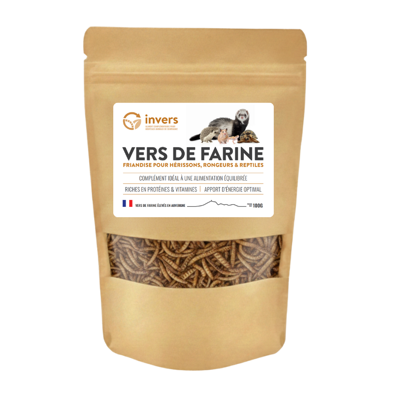 Les vers de farine déshydratés constituent une alimentation de premier choix pour vos animaux de compagnie. Ils sont très appréciés des furets, hamsters, tortues, reptiles type gecko et les poissons de bassins (carpe koï).